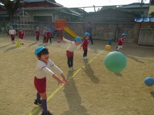 ドッチボールのルールを教えてもらいながら、ボールを投げたり、ボールから逃げたりと笑顔で楽しむ子どもたちでしたよ😊😊😊