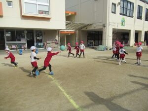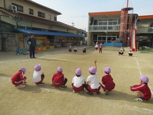 「ことしもよろしくおねがいします!!」と元気いっぱい子どもたちの挨拶が園庭に響いています。