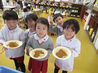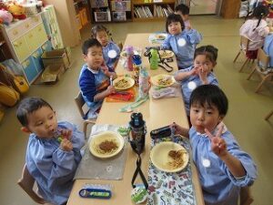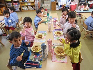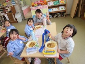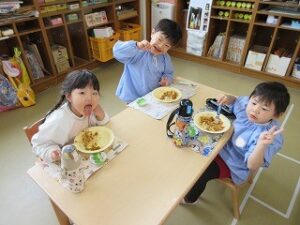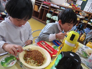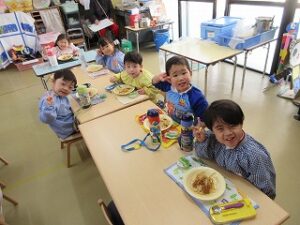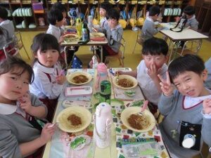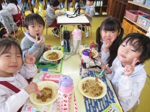 「おいしいね~!」「スパゲッティ大好き!」と、ニコニコ笑顔で完食でした(*^▽^*)