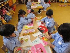 カラフルな線を書いたり、水玉模様にしたり、ハートを描いたり…