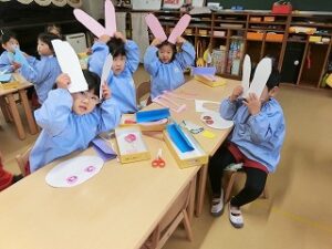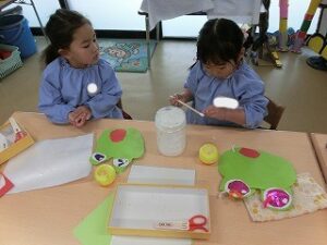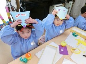 劇遊びの集いでつけるお面がどんどん出来上がってきましたよ!