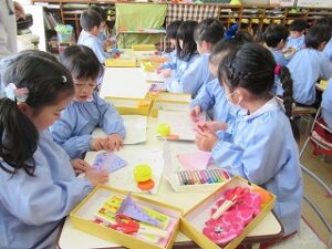 早くお面につけたいな~!と、楽しみにしている子ども達です♬