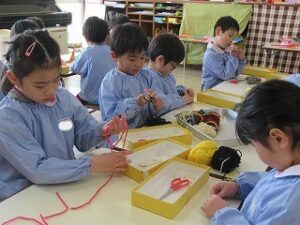 「毛糸が広がっちゃった!」「すべって結べない~(:_;)」
