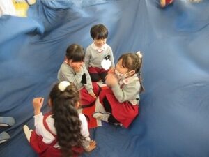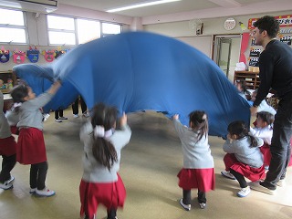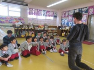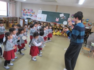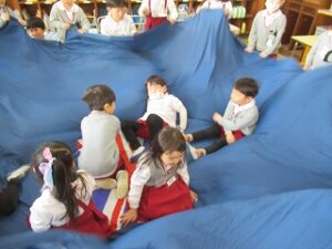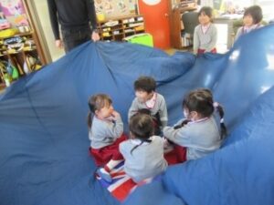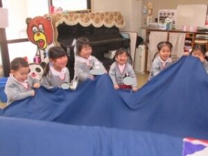 絵本を見たり、音楽に合わせて身体を動かしながら楽しい時間を過ごしています。