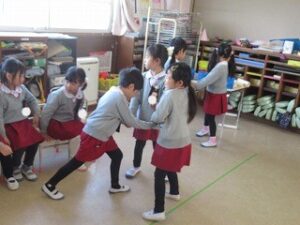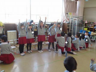 昨日の続きで、歌の振り付けをみんなで考えたよ♬