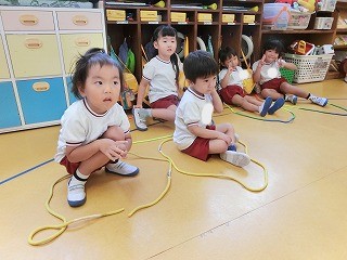 「上からぱくっと掴むんだよね!」と、みんな持ち方完璧です☆