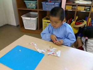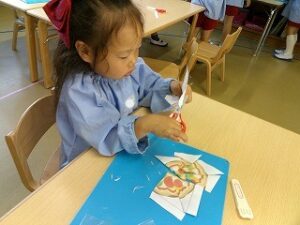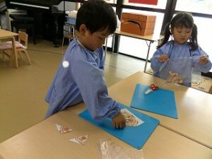 ピザのイラストに描いてある線の上を、きれいに切っていきます!