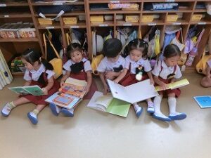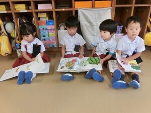 自分の順番がまわってくるのを待っている間は、絵本タイム📚