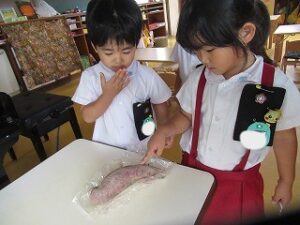 「硬いね(^o^)」「どんな匂いがするかな?」と、みんな興味津々です☆
