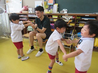 「ABCDEFG~♬」と元気いっぱい歌ったり、楽しい時間を過ごしています。