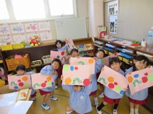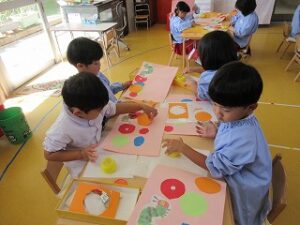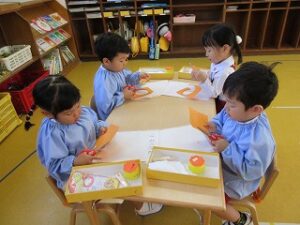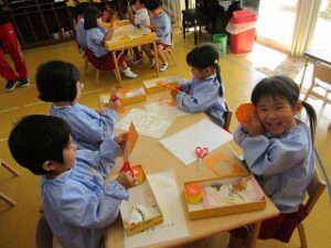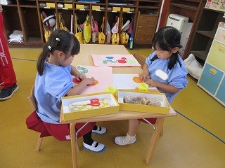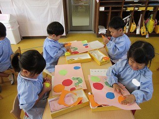 今日はオレンジ色の画用紙を丸い形に切って、オレンジを作りました🍊