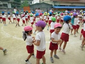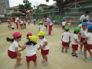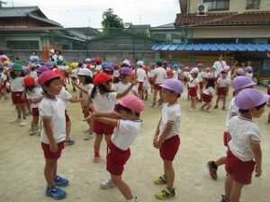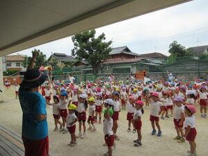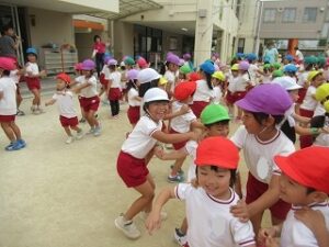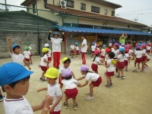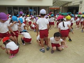 異年齢のお友だちがペアになって「いっしょにおどろう!」と誘い合っている姿はとても微笑ましいです。