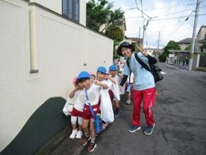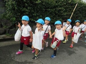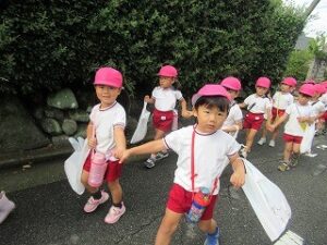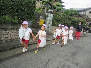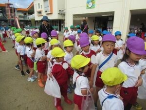 年少さんと年長さんがペア―になってから出発です!レッツゴー!