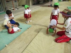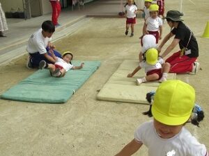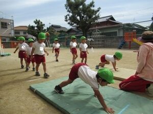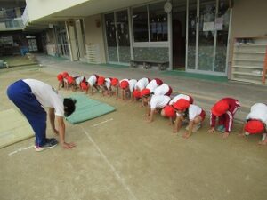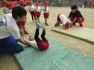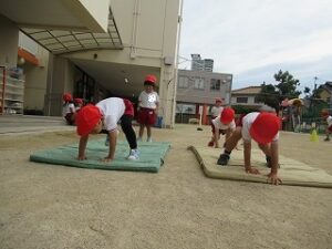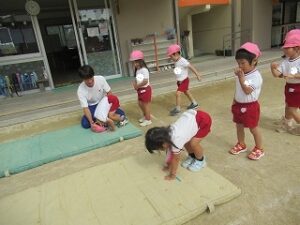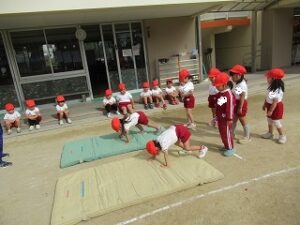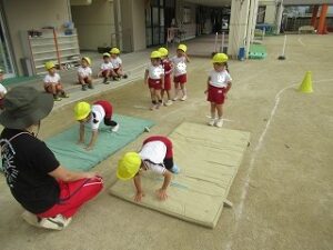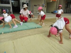 前転(でんぐり返し)や、くま歩きにチャレンジしましたよ。