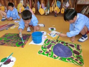今日は、絵の具を使って絵画を描くよ!