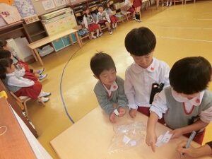 先頭のお友だちからくじ引きを引いていきますよ♬