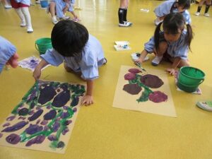 みんなが掘ったお芋みたいな、大きなお芋を絵の具を使って描いたよ♪
