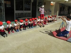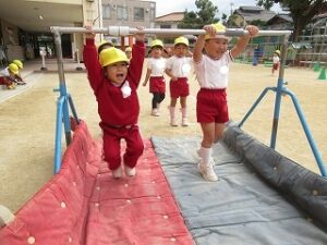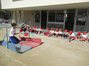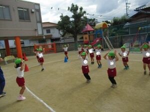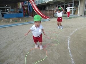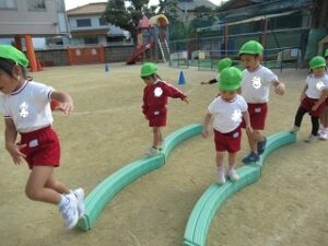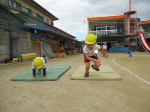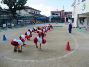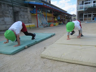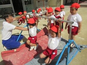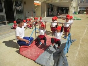 ①鉄棒②うさぎ跳び③クマ歩き④平均台を順番に回り、サーキット運動をしました!