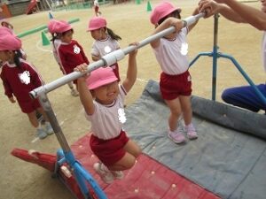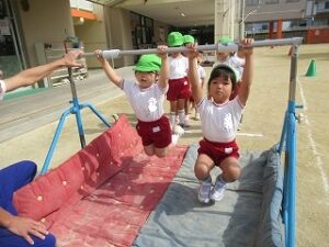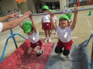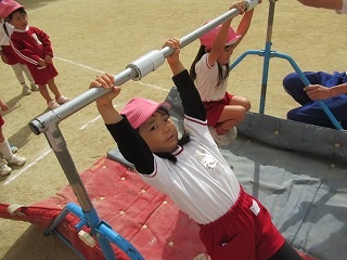 みんな初めての鉄棒にとっても嬉しそうにぶら下がっていました☆