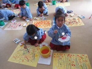 筆でチョンチョンと色付け!楽しいな(*^▽^*)