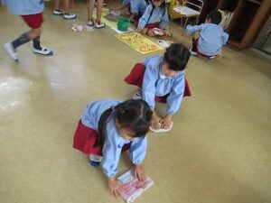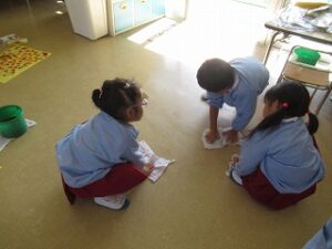 パレットや筆を洗ったあとは、お部屋も綺麗にするよ!