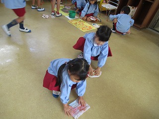 筆でチョンチョンと色付け!楽しいな(*^▽^*)