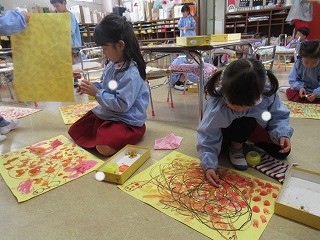 キラキラのホイル折り紙が、ひらひらと葉っぱが落ちてきているようで、とっても綺麗です🍁