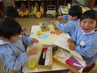 お友だちと仲良く製作♡かわいいですね(^^)/