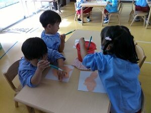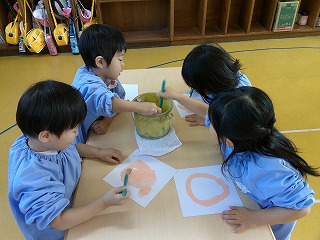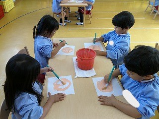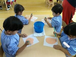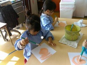自分人形の作成にむけ、お顔の輪郭を絵の具で描きました!