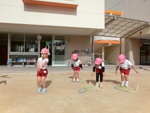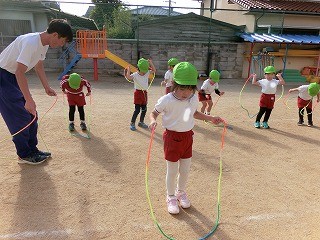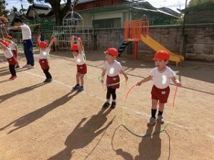 今日は体育指導でした。久しぶりに縄跳びをしました。