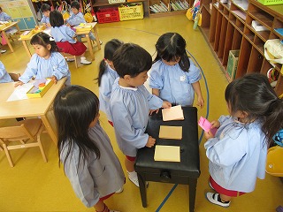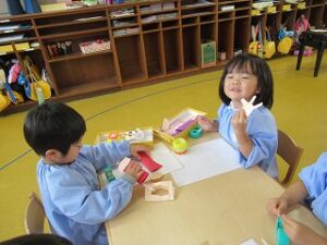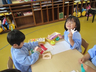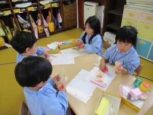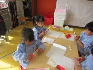 「手の指は何本いるかな?」と、自分の指を数えながら画用紙の数を確認中!