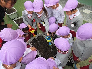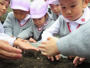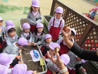 球根の形を見て「にんにくみたい!」「たまねぎみたい!」と、興味津々です(*^▽^*)