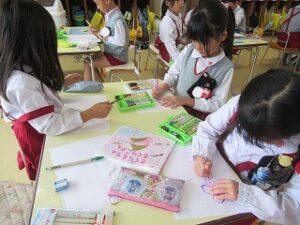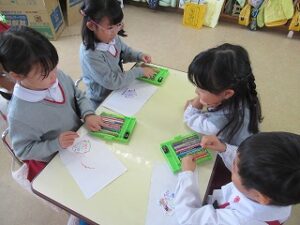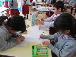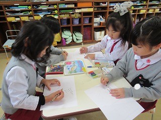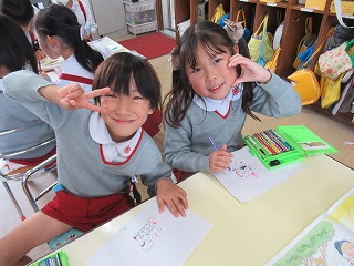絵本を読んだ感想などをメッセージにして、描きましたよ。読んでくれるといいな~♪