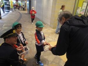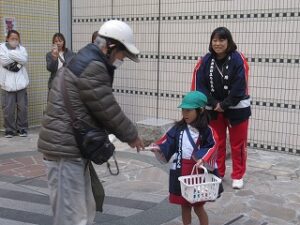 道行く人に、笑顔でティッシュを受け取っていただきとてもうれしそうな子どもたちでした。