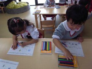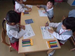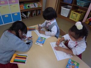 ぬりえが上手になってきた、いちご組のお友だち!