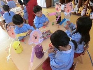 四角に切ったり、三角を作ったり、2つの形を合体させたりと、みんないろんな方法を考えながら作る姿に成長を感じました✨