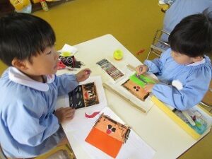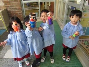 最後にトイレットペーパーの芯に糊で貼り付けると、完成!!!