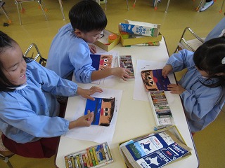 まずは、好きな折り紙を選んでお洋服作り👚