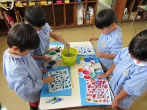 油性ペンで書いたり、ビニールテープを使って貼ったりと、とってもダイナミックなパイナップルの完成です。