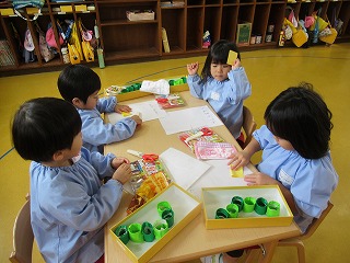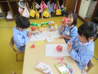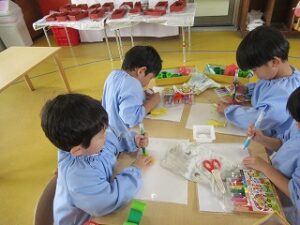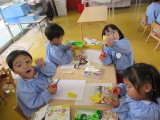 細かな顔のパーツを、自分なりにはさみを使って小さく切っていきました。