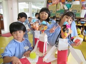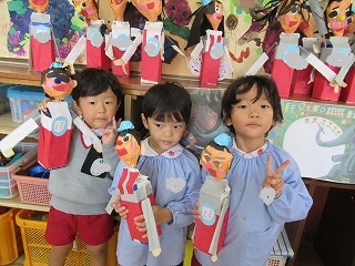 「見て、私の制服かわいいやろ」「自分でできた!」と、とっても満足そうな子どもたち。