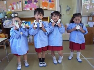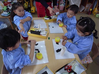 どんな風な形にしたら良いかな~と、「丸にしよう!」「細長いのになった!」と教えてくれました。