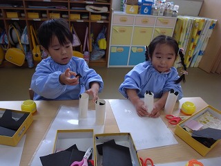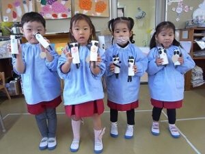 パンダをトイレットペーパーの芯を使って2体作りました。