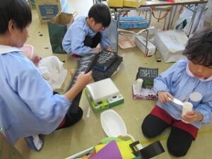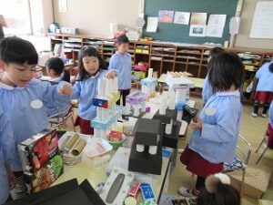 どんな素材を合わせると大きなお城になるかな~と、素材をいかしながら、実際に建てては、倒れちゃったりを繰り返しながら大きなお城になりました!