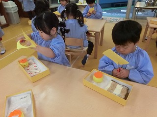 大きさを考えながら一生懸命切ります!
