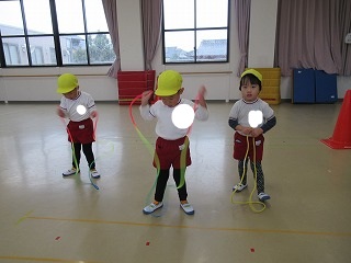 そのあと、「まわして、ぴょん!」と、両足でジャンプする練習もしましたよ!