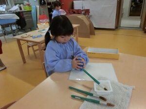 画用紙と違って、大きな段ボールに豪快にぬっていくよ(*^▽^*)