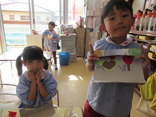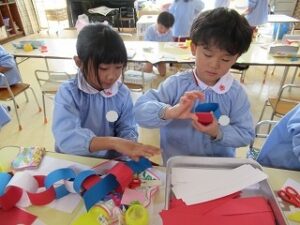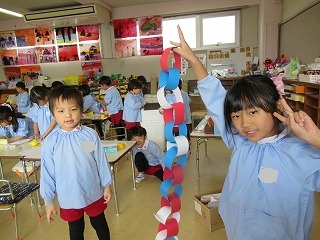みんなで協力して長くなった輪つなぎを見せてくれました!