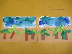 茶色の画用紙で木を植え、葉っぱを貼ったら完成✨