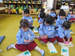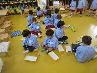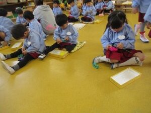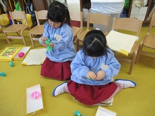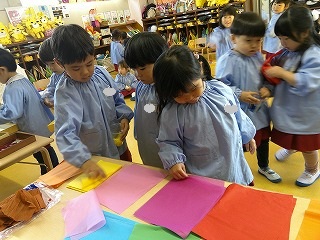 自分のカップを選び、その中にお花紙をジュースに見立てて入れたり、アイスクリームを入れて完成!